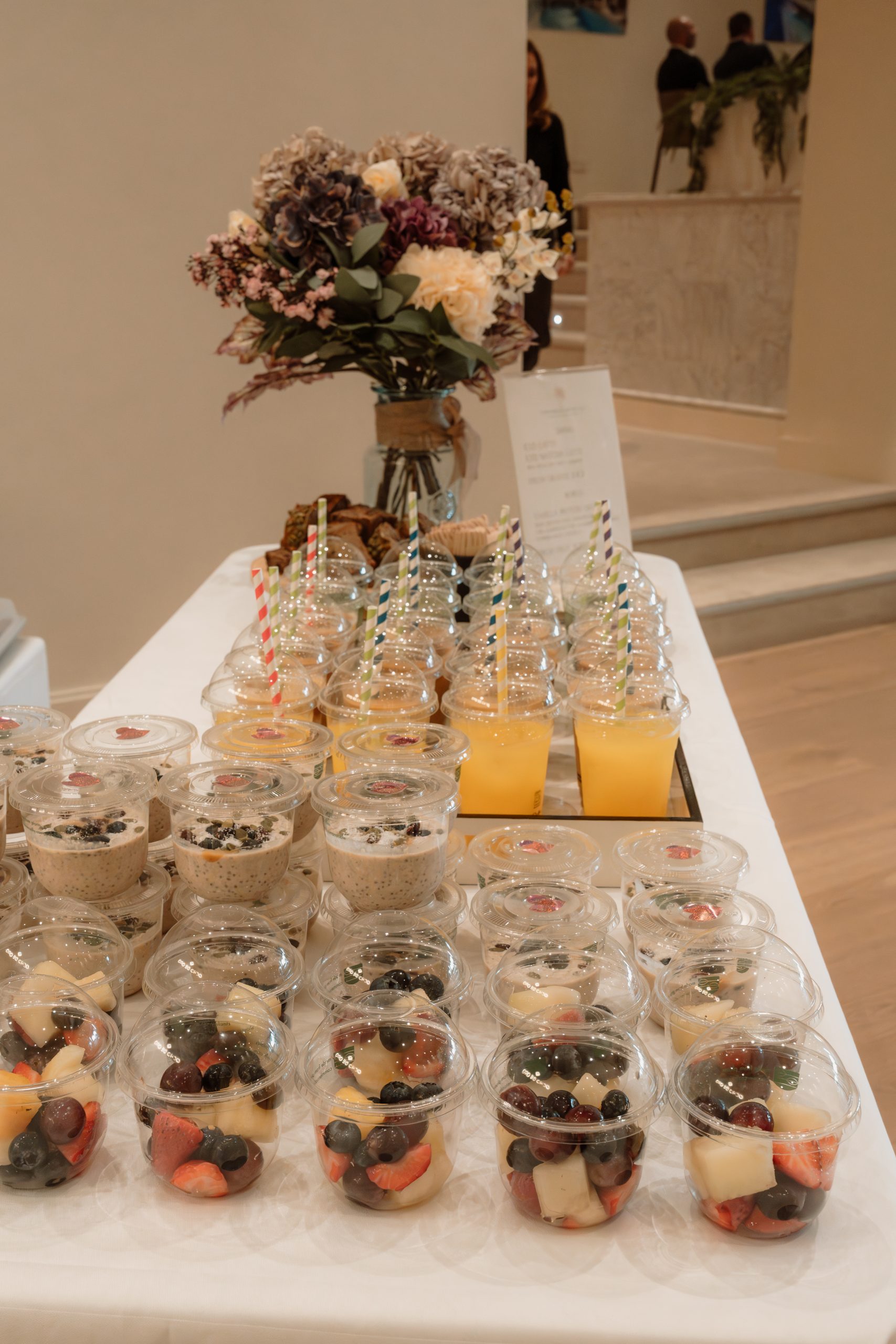 Guests enjoyed a curated breakfast selection featuring overnight oatmeals, fresh fruits, natural juices, matchas, and iced coffee from Explorer Coffee Co. Our appetizer boards added a welcoming touch, creating a balance between elevated presentation and relaxed atmosphere.